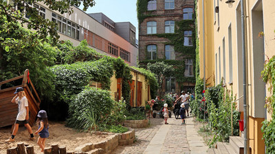 Kijk eens uit je vensterraam? Zie je een straat, lantaarnpalen, voorbijrijdende auto’s? Dan woon je wellicht niet in een cohousingproject. Het kan choquerend zijn voor de modale Vlaming, maar bij de meeste cohousingprojecten kan je niet voor je deur parkeren. Geen carports, garages of opritten voor je deur, maar wandelpaadjes en groen. De auto blijft aan de rand of ondergronds op veilige afstand. Dit stimuleert gebruik van de fiets (die wel een plek krijgt naast je voordeur) en zorgt ervoor dat autodelen makkelijker te organiseren is. Bijkomend voordeel: kinderen spelen veilig buiten, je zit rustig in je tuin en er is vééél meer plaats voor groen.