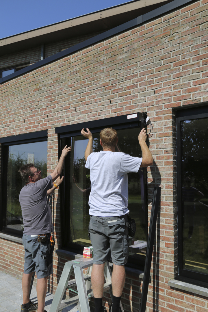 Aanvankelijk dacht Vitralux aan de Fixscreen 100 om in voorbouw tegen de nieuwe ramen te monteren. Voor inbouw in de spouw was er immers geen ruimte in de bestaande gevel. De klant wilde echter een zo klein mogelijke doekkast, zodat die zeker niet uit het gevelmetselwerk zou steken. Het compactere kastformaat van de Fixscreen Go (amper 85 mm diep) bood hiervoor de perfecte oplossing.