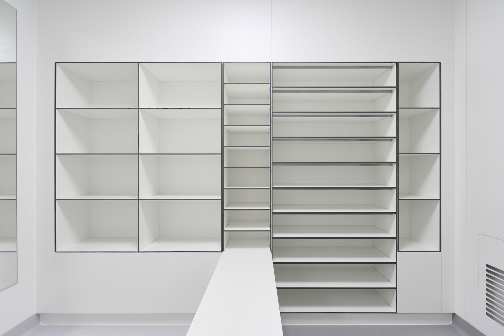 In dit project werd ook gewerkt met de Max Resistance-variant. “Die is specifiek ontwikkeld voor cleanrooms en laboratoria, waar typisch een heel hoge chemische resistentie vereist is en intensief onderhoud gebeurt. De plaat heeft dan ook meer dan 99,99% gesloten oppervlak met een hoge slijtvastheid en is bestand tegen temperaturen van -80°C tot +180°C”, vult Frank De Langhe, Sales & Prescription Manager bij Fundermax, aan.