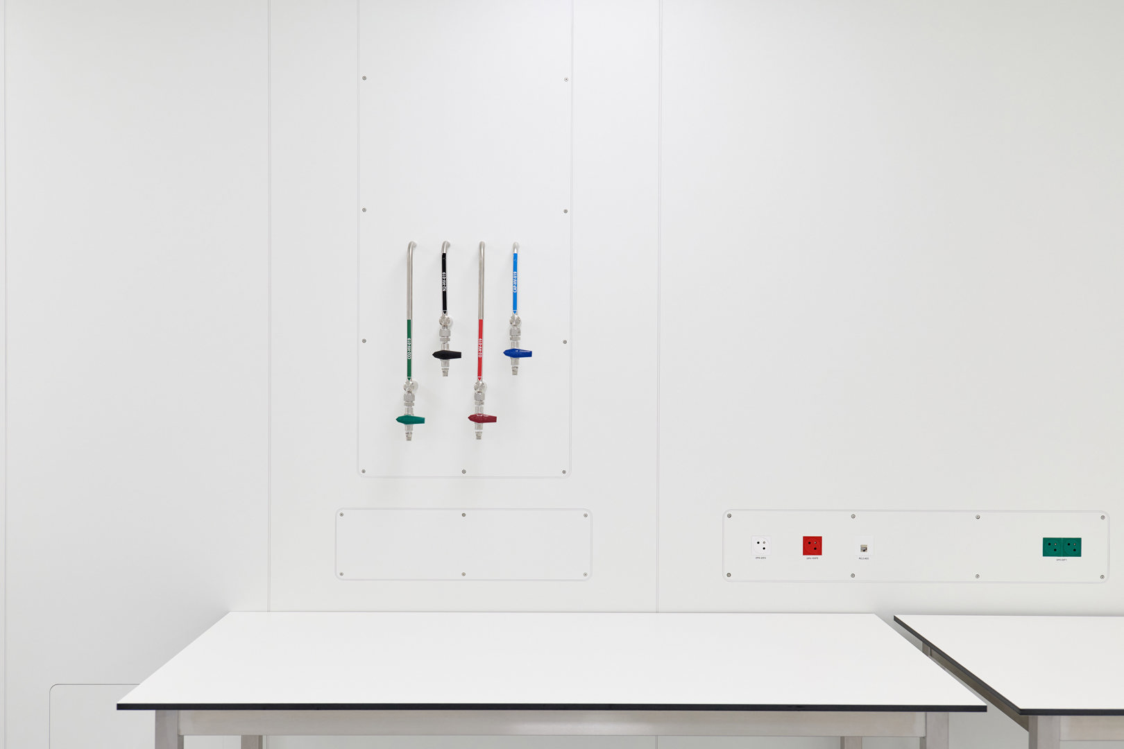 In dit geval ging het onder andere om een cleanroom Klasse B. Voor de sanitaire wanden en andere vaste inrichtingselementen werkt Kardeco samen met Kupan, dat hier op zijn beurt de Max Compact Interior platen van Fundermax verwerkte.