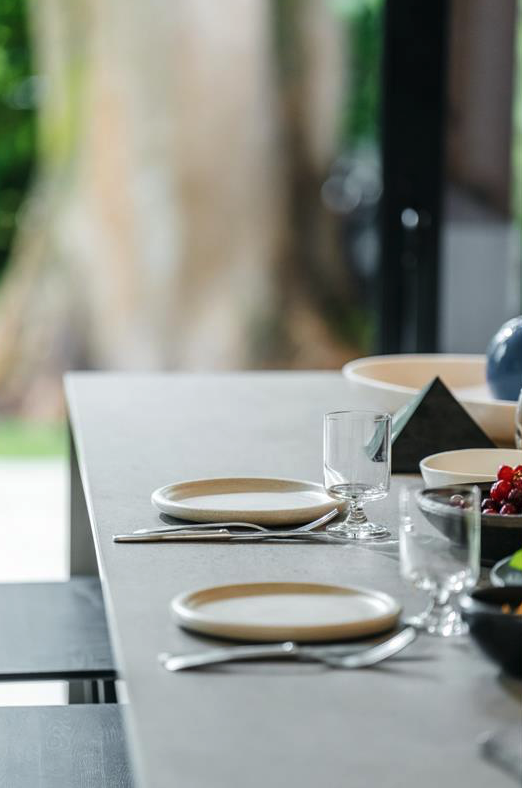 “De keuken is de plek waar we met het gezin samenkomen om te eten en elkaar aan het einde van een dag terug te ontmoeten, maar het is ook de plek waar ik veel van mijn voorbereidend werk als food styliste doe. Een kwalitatief hoogstaand werkblad is dus essentieel voor mij.” De kras- en hittebestendigheid van Dekton® maakten het tot een vanzelfsprekende no-brainer wanneer het op de materiaalkeuze van de inrichting van de keuken aankwam. Het Keon-werkblad dat Sofie koos is zowel terug te vinden in de keuken als de bijkeuken, een duidelijk signaal dat ze de duurzaamheid van Dekton® weet te smaken.