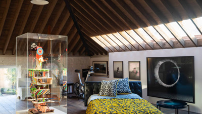 Daarnaast zit er een kunstzinnig kantje aan de woning. Zo stellen de bewoners hun werken tentoon in een ruimte aan de achterzijde van het huis. Die is van kop tot teen omgeven door ramen. Het creatieve aspect wordt doorgetrokken in de bibliotheek, waar het plafond werd beschilderd door kunstenaar Morag Myerscough.