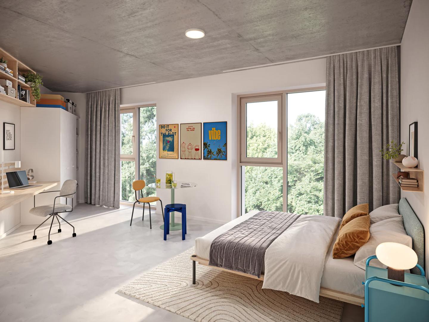 De residentie omvat 98 studentenstudio’s die verdeeld zijn over de verschillende verdiepingen. Op de begane grond bevinden zich studio's die specifiek zijn ingericht voor personen met een beperking, samen met 400 vierkante meter aan gemeenschappelijke ruimtes. Naast de inkomzone zijn er studie- en ontspanningsruimtes en een ruime fietsenstalling voorzien. De studio's op de hogere verdiepingen beschikken over veel lichtinval en zijn ontworpen als zelfstandige units waarin studenten kunnen wonen, koken en studeren.