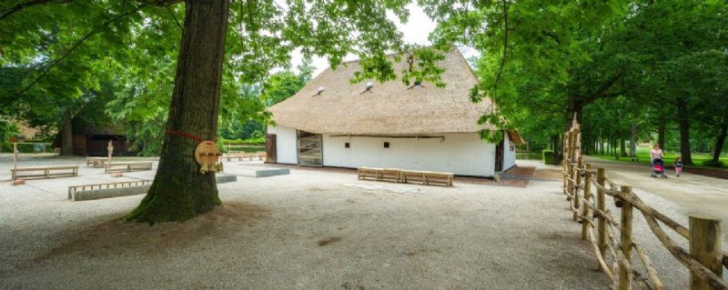 De speelschuur wordt opnieuw en zelfs nog meer dan vroeger een brandpunt en belangrijke ontmoetingsplek binnen het museum. De rode strook in halfverharding rondom het gebouw benadrukt deze centrale positie in het landschap en bevordert de integrale toegankelijkheid van de schuur.