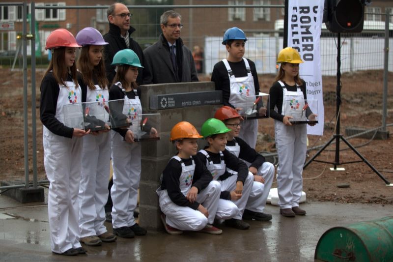 Het nieuwe gebouw wordt mogelijk gemaakt door de publiek-private samenwerking van Scholen van Morgen. Dit bouwprogramma omvat de nieuwbouw van 165 scholen in België, waarvan dJGA er negen ontwerpt. De verwachting is dat de nieuwbouw van alle 165 scholen in 2017 gereed is. Scholen van Morgen heeft al meer dan veertig bouwwerven opgestart. De nieuwbouw van het Óscar Romerocollege wordt uitgevoerd door aannemer THV Jan De Nul – Van Laere, die ook het onderhoud doet van het bestaande schoolgebouw. Het nieuwe schoolgebouw wordt naar verwachting in april 2016 opgeleverd.