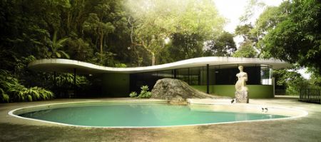 Oscar Niemeyer voor het Niteroi museum voor hedendaagse kunst in Rio de Janeiro