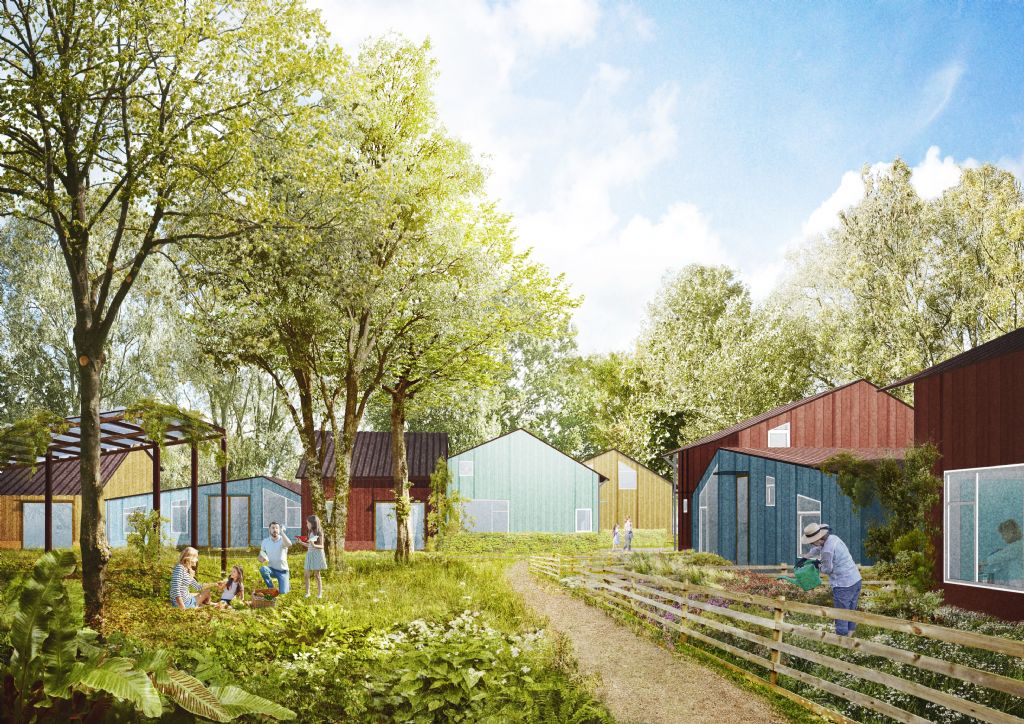 De wedstrijd Floreal voor kleinschalig wonen waarvan de procedure nog lopende is. Omdat we opnieuw een site voorgeschoteld krijgen waar we ons vragen bij stellen, (niet in de dorpskern en omringd door bossen) investeren we in een synergie tussen natuur en architectuur. We maken een bos met woningen in. Voor ons is dit project een zoektocht naar circulair bouwen en kleinschalig wonen, twee onderwerpen waar we al even mee bezig zijn.