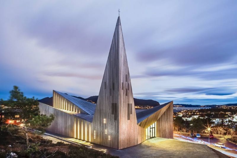 Een tweede zeer geslaagd bouwproject, is de herinterpretatie van het Noorse symbool bij uitstek, de staafkerk. Deze werd prachtig vorm gegeven in het Noorse dorpje Knarvik met het ontwerp van Laut Reiulf Ramstad. De ruwe vormen van het landschap inspireerden de architect tot een maximale inpassing in het rotsachtige. Licht, materiaal en kleur vormen wederom een harmonie, maar dat is dan ook één van mijn stokpaardjes.