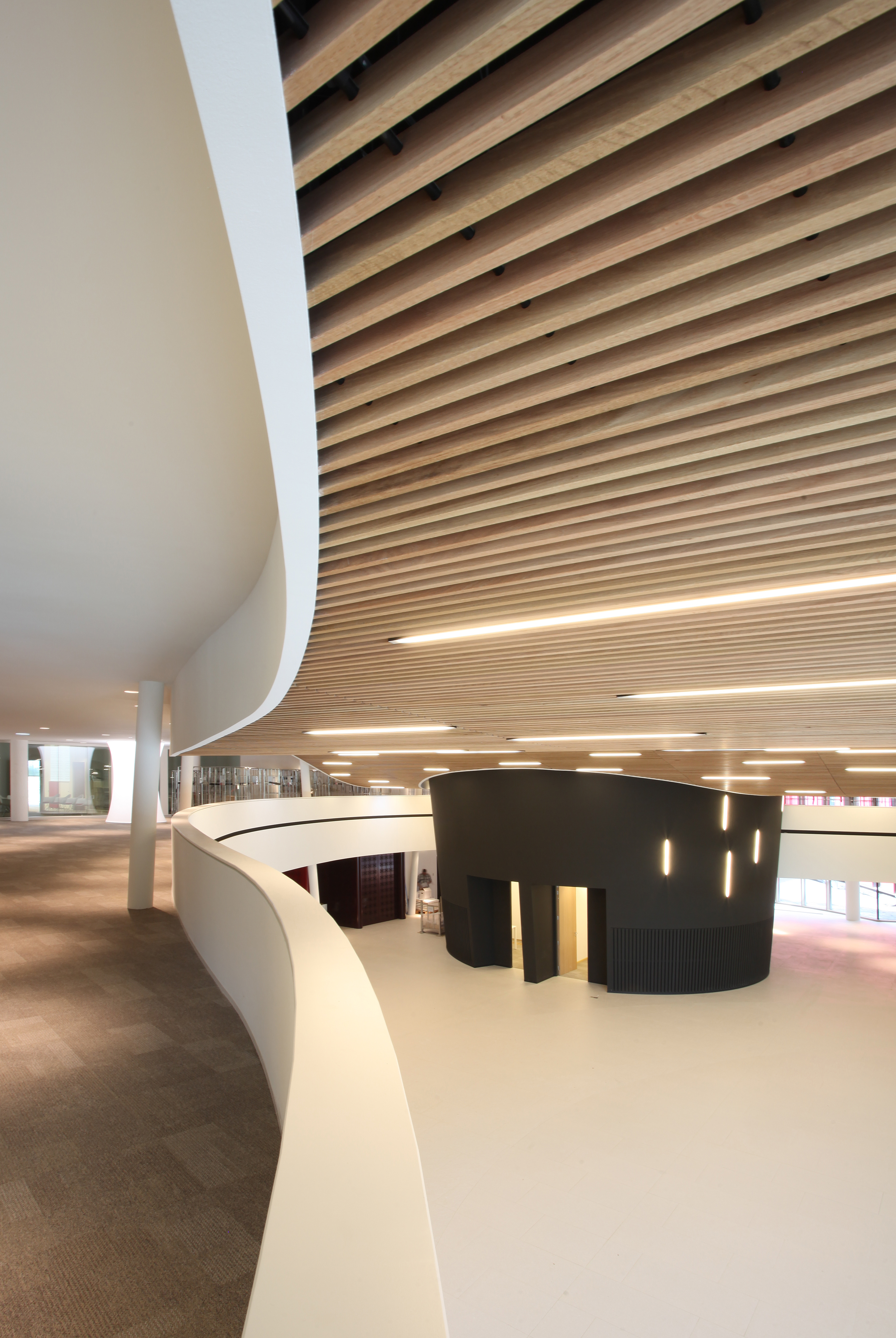 \"Wij proberen ons altijd te beperken tot een aantal materialen, maar werken toch heel graag met hout. We bekijken ook steeds wat er met hout allemaal mogelijk is. We kunnen bijvoorbeeld hout in combinatie met staal of beton gebruiken, maar ook verkoold hout of houtstructuren als constructie- of afwerkingsmateriaal. Daar zit vaak een uitdaging aan vast omdat je met restricties zit. Het is echt de grenzen opzoeken en aftasten.\"