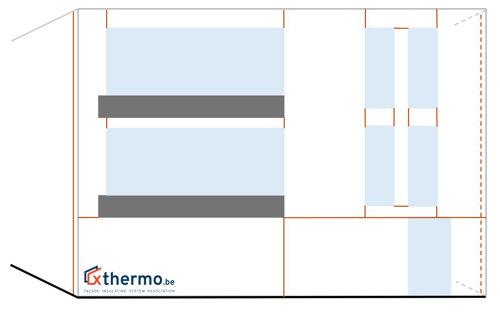 Bij grote gevelvlakken, vooral met een lengte van meer dan 12 meter, kunnen thermische uitzetting en krimp aanzienlijke spanningen veroorzaken. Dit geldt ook voor ETICS (External Thermal Insulation Composite Systems) met harde bekledingen, waar verschillende materialen zoals isolatie, wapeningsmortel, lijm en de bekleding elk anders reageren op temperatuurschommelingen. Deze spanningen kunnen leiden tot scheuren en schade aan de afwerking als de gevelvlakken niet goed worden begrensd.
