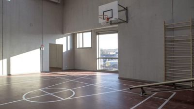 De turnzaal is letterlijk en figuurlijk een bouwkundig hoogstandje. “De buitenschil van het gebouw bestaat volledig uit prefabbeton, maar in het centrum zijn kolommen geplaatst waarop slanke liggers in S355-staal rusten (omhuld met beton voor extra draagkracht), die op hun beurt voorgespannen welfsels ondersteunen. Onder de sporthal zijn die welfsels een stuk groter dan elders in functie van de eigen frequentie. Bovendien bestrijken de premuren van de sporthal twee bouwlagen en zijn ze in één keer (lees: over de volledige hoogte van circa 6 meter) geplaatst om geen horizontale voegverdeling te hebben”, verduidelijkt Tom Vanderbeken, projectmanager bij aannemer Denys. “Eveneens belangrijk om weten is dat we een vrij grote, steile bouwput hebben moeten maken omdat het terrein vroeger helemaal anders geprofileerd was. Aangezien een gedeelte van het gelijkvloerse niveau onder de bestaande speelplaats zit, hebben we een verloren secanspalenwand moeten plaatsen om de aansluiting te kunnen maken.”
