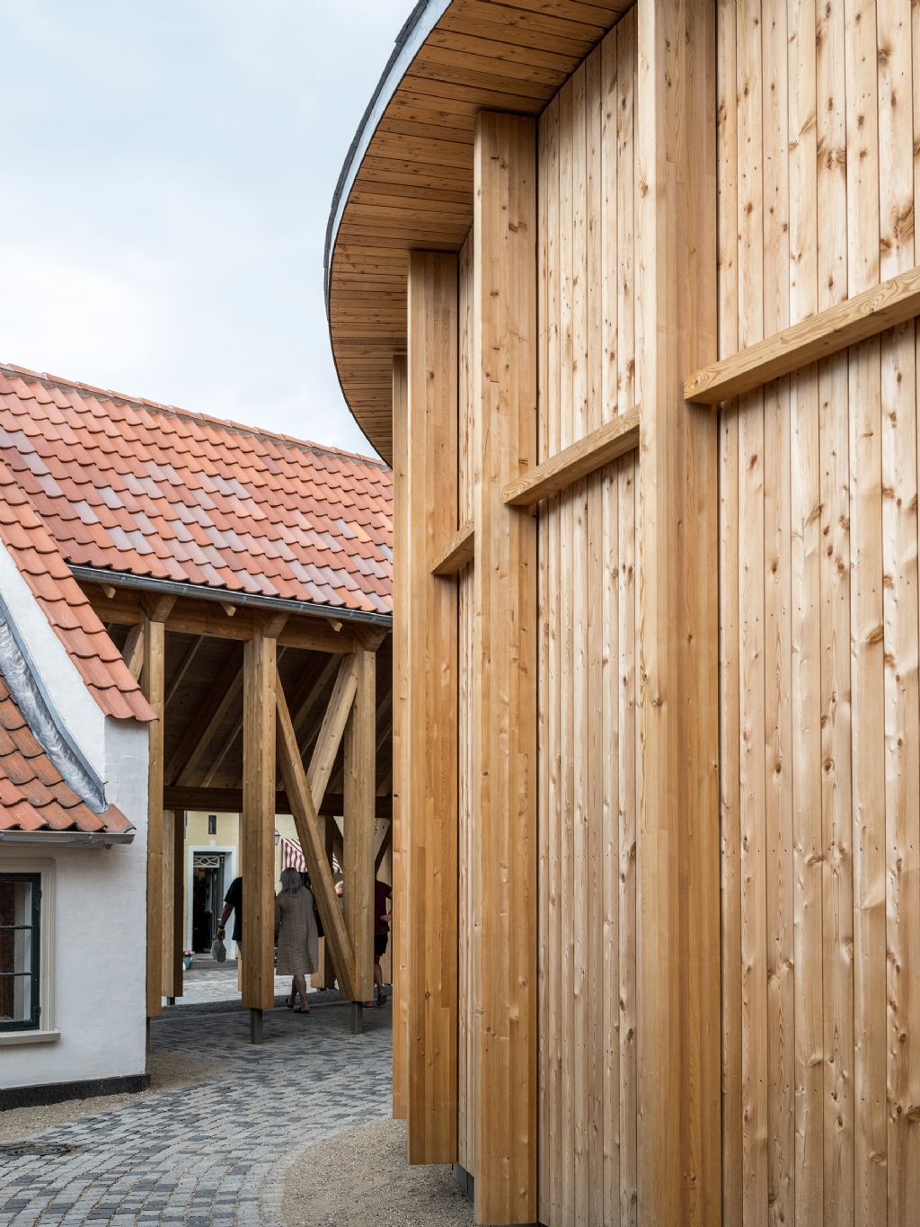 De nieuwe bovengrondse gebouwen beantwoorden aan de bestaande schaal van het geboortehuis van H.C. Andersen, en aan de omringende historische context. Hun gevels zijn een moderne interpretatie van de oude Noord-Europese traditie van vakwerkhuizen. Expressieve houten constructies van massief hout zijn omsloten met glas, waardoor een lichte en delicate expressie ontstaat, en de gebouwen als paviljoens in de tuinen verschijnen. Het hout in het interieur is van de Deense fabrikant Dinesen.