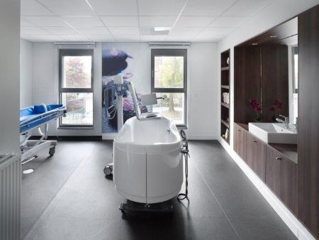 Wanneer we het nieuwe woonzorgcentrum betreden, valt één ding meteen op: dit is in de verste verte geen 'rusthuis' in de klassieke zin van het woord. Het hotelgevoel is meteen aanwezig, alsof je – na de glazen inkompartij te hebben gepasseerd – aan de grote balie op de rechterkant zomaar even een kamer zou kunnen boeken. Even verderop staat een kranige houten tafel met mooie zitmeubels, geruggensteund door een wandkast met boeken, magazines en gezelschapspelletjes. “Daar zitten de bewoners 's morgens geduldig te wachten op hun krant, precies zoals we voor ogen hadden,” vertelt Bart Houbregs. “In De Vierde Wand moet je als bewoner een thuisgevoel hebben. De typische, steriele ziekenhuissfeer is hier (gelukkig) ver te zoeken. De focus op huiselijkheid laat zich overal gevoelen: zowel in de gepersonaliseerde kamers (bewoners mogen hun kamer inrichten met eigen meubels) en het huiselijke interieur (zachte materialen, stijlvol behang, mooie armaturen, keramische vloertegels in de gangen, vinylvloeren met parketmotief in de kamers, ...) als in de omgang met de bewoners (geen bezoekuren, vlotte beschikbaarheid van personeel, ...).”