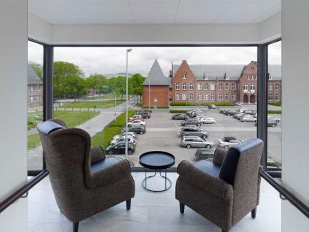 De realisatie van De Vierde Wand werd definitief afgerond in november vorig jaar. De bouw werd in goede banen geleid door STRABAG, dat het complex op amper vijftien maanden tijd (van juni 2011 tot november 2012) wist te realiseren. “De bouw was op zich vrij klassiek, maar toch is vijftien maanden voor dit type gebouw behoorlijk snel,” vertelt projectleider Laurent Cardinaels. “Onze ervaring met het bouwen van andere woonzorgcentra zal hier ook wel een rol in spelen, maar vijftien maanden is in feite wel uniek. STRABAG heeft heel wat ervaring in bouwen voor de zorgsector. We hebben recent al heel wat ziekenhuizen en woonzorgcentra gerealiseerd (WZC Den Boogerd in Hechtel-Eksel, WZC Bessemerberg in Lanaken, kinderziekenhuis Prinses Elisabeth van het UZ Gent, …). In project De Vierde Wand waren we verantwoordelijk voor de ruwbouwwerken, afwerking en coördinatie van de technieken. Wat het project ook zeer fijn maakte, was dat we de werken vanuit ons kantoor in Genk hebben kunnen opvolgen. In zekere zin was het voor ons een thuismatch, en dan nog eentje die we met glans hebben kunnen winnen.” Dit geldt overigens ook voor de architect en de vele andere partijen die aan dit project meewerkten, die net als aannemer STRABAG geselecteerd werden via beperkte aanbesteding. Het Limburg- en het Winterslag-gevoel is dan ook fel aanwezig in De Vierde Wand. Een perfecte illustratie hiervan is de uitkraging op het tweede en het derde niveau van het kopvolume, van waaruit je een schitterend uitzicht hebt over de Evence Coppéeplaats en de verderop gelegen mijnterrils van Winterslag. Een unieke meerwaarde die je nergens anders kan vinden en die de karakteristieke omgeving bijzonder dichtbij brengt. Het mag dus duidelijk zijn: Bart Houbregs heeft hier niet alleen zijn eigen droom waargemaakt, maar ook die van heel wat Genkenaren die comfortabel ouder willen worden in eigen streek.