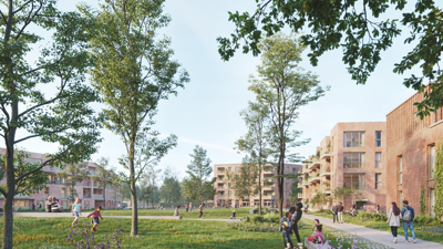 DENC-STUDIO, Areal en Bontinck geven sportsite nieuw leven met gemengde woonwijk in coherente baksteenarchitectuur