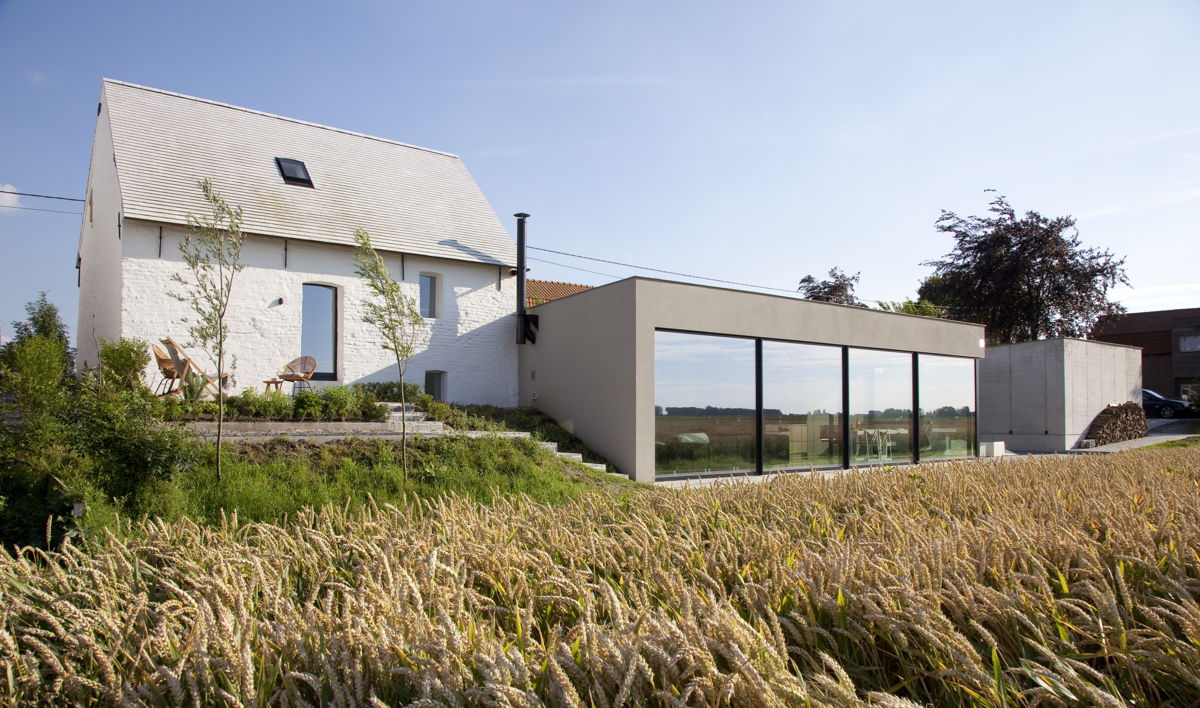 Het dijkhuis werd volledig gerenoveerd door architect Bart Lens en uitgebreid met een modern pand uit beton en staal, ingebouwd in de top van de dijk. Dat bijgebouw vloeit harmonieus over in het landschap en is vanaf de straatkant nauwelijks te zien. Een grote raamgevel aan de achterzijde van de aanbouw biedt een prachtig uitzicht over de omringende natuur. De “ondergrondse” constructie leent zich bovendien perfect voor eenvoudige warmteopslag.