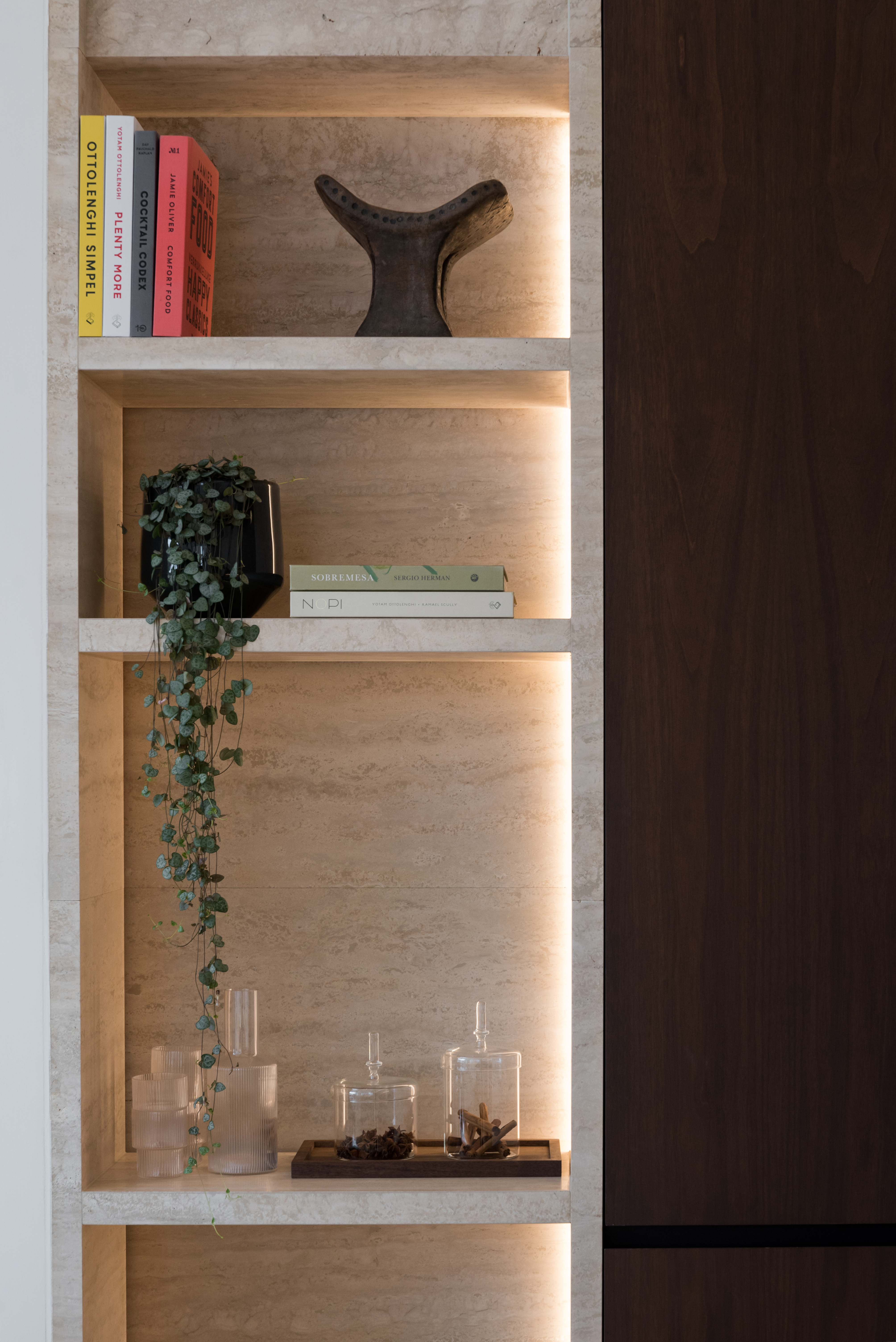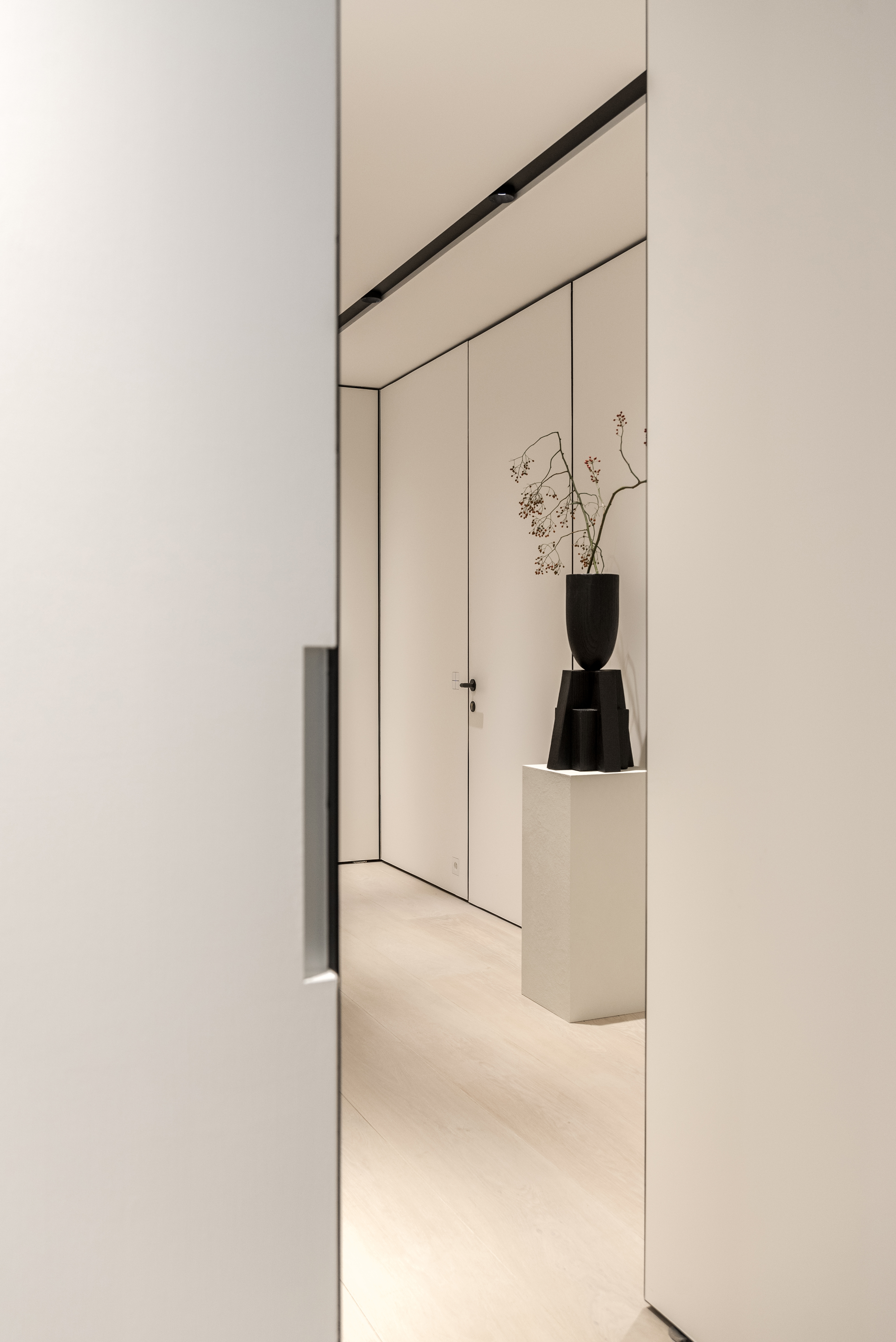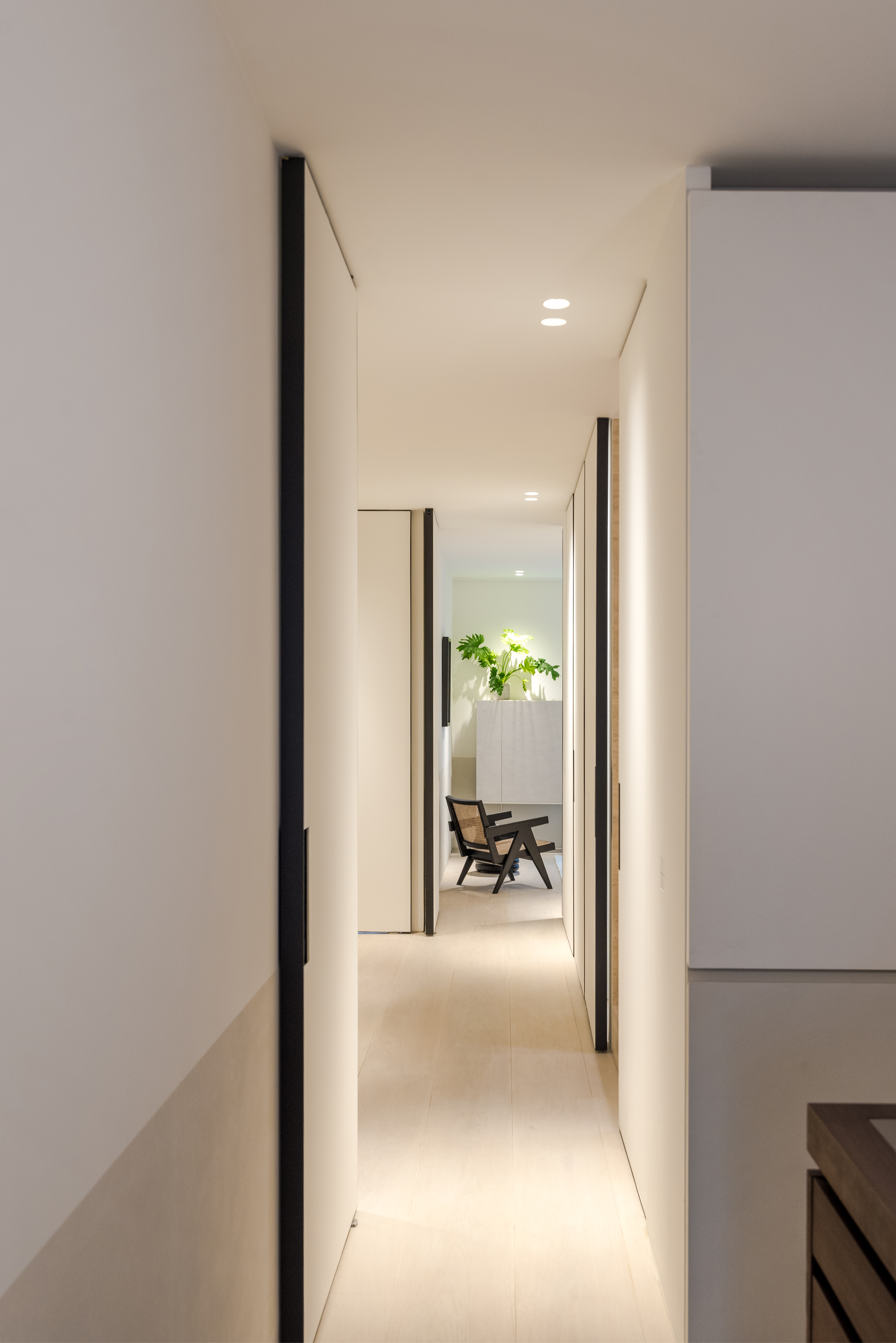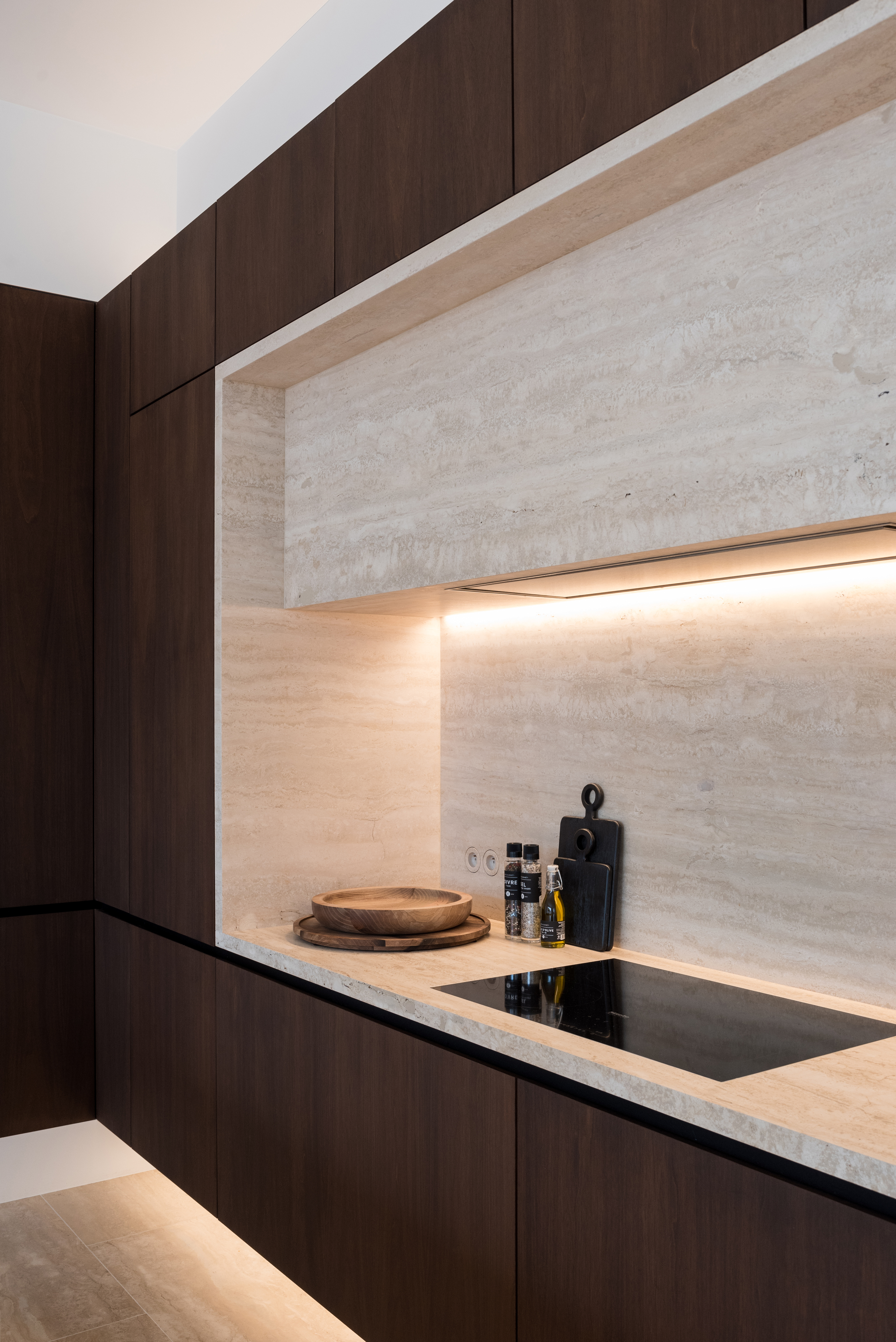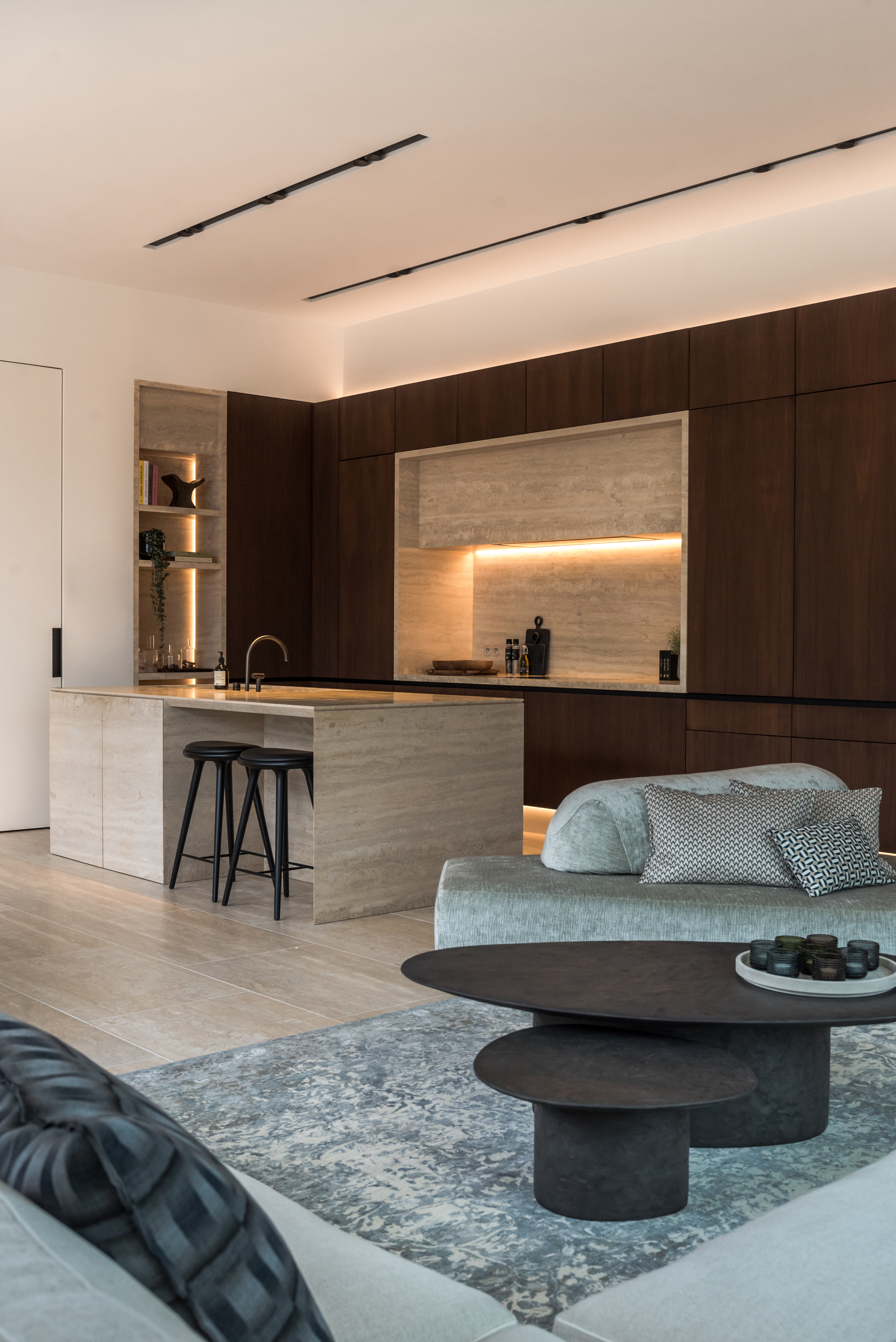 Het oog van Eric en zijn vrouw viel op een casco penthouse met zicht op het MAS. Eric Van Tilburg: “In onze zoektocht naar een architect kwamen we al snel bij Dieter Vander Velpen terecht. Ik kende Dieter en zijn kwaliteiten. Mijn vrouw en ik houden wel van mooi interieur, maar het is Dieter die er een geheel van kan maken. We werden meteen betoverd door zijn ontwerp. En het is ongelooflijk hoe dicht het eindresultaat aanleunt bij zijn renderings.”