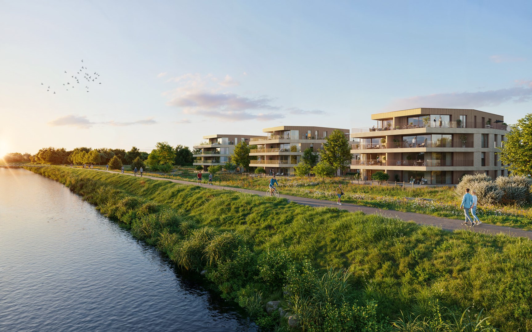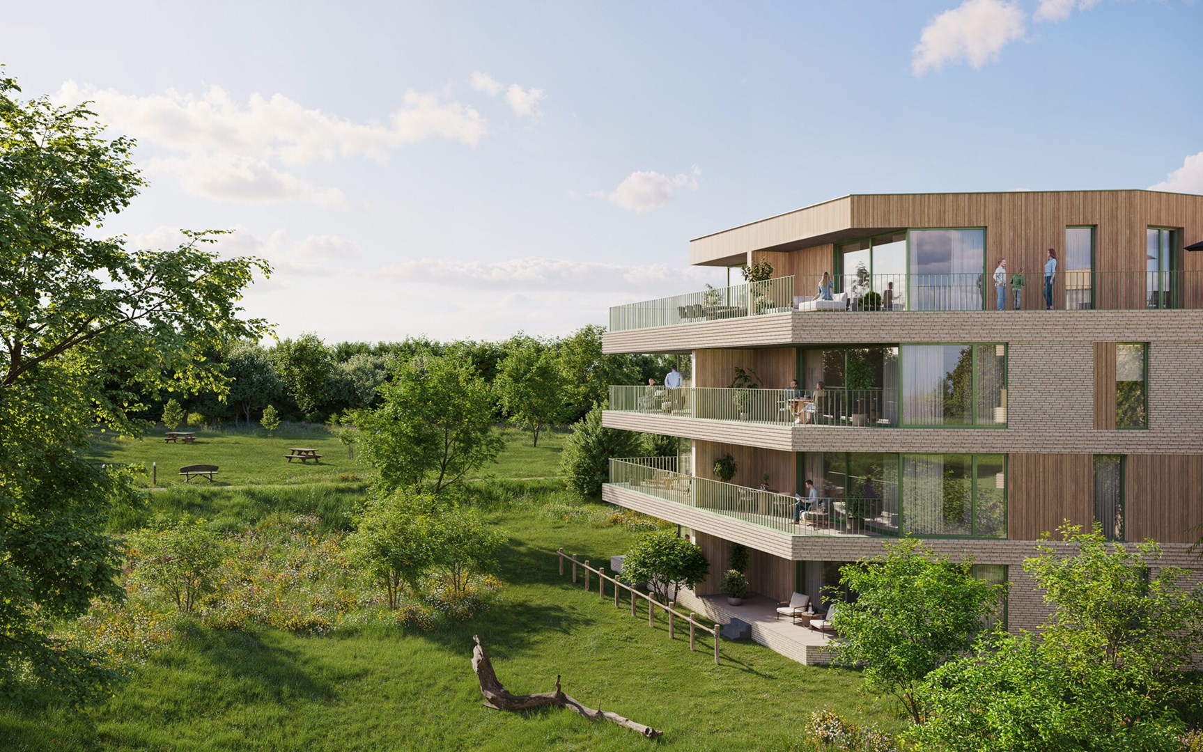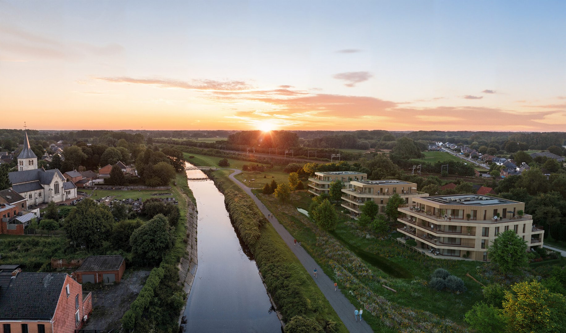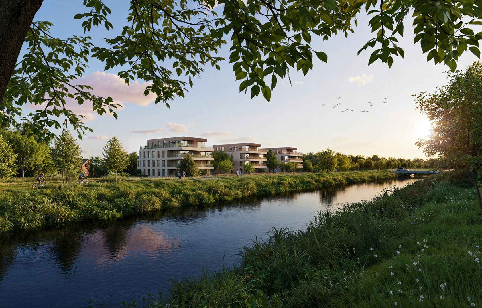 In Eppegem, op een uitzonderlijke ligging aan de Zenne, verrijst binnenkort DIJK: een residentieel project met 38 energiezuinige appartementen, een commerciële ruimte, een ondergrondse parking en een landschapspark. Strategisch gelegen tussen station en dorpscentrum, biedt het project niet alleen een perfecte balans tussen rust en toegankelijkheid, maar ook een sterk samenspel met de omliggende natuur. Het doordachte ontwerp van BINST ARCHITECTS sluit harmonieus aan bij de natuurlijke en architecturale omgeving.