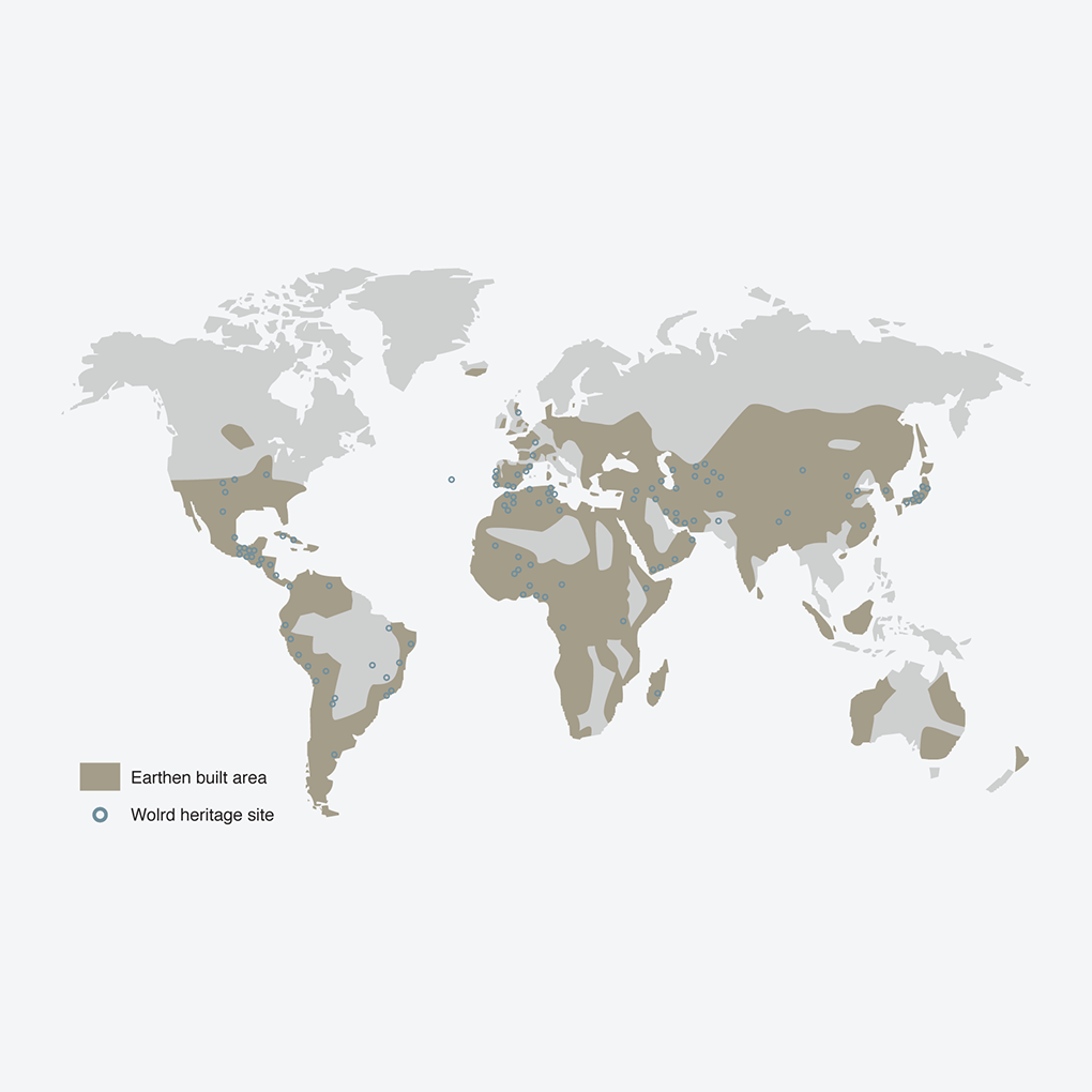 “Hoewel we het hier minder vaak tegenkomen, heeft bouwen met aarde zich over alle continenten verspreid. Aarde is dan ook haast overal te vinden. Het is vandaag de dag zelfs een van de populairste bouwmaterialen: meer dan 2 miljard mensen wonen in aarden gebouwen. Uiteraard situeert de meerderheid daarvan zich wel in minder geïndustrialiseerde landen met meestal een droog klimaat. Dat leidt ons naar een tweede vooroordeel …”