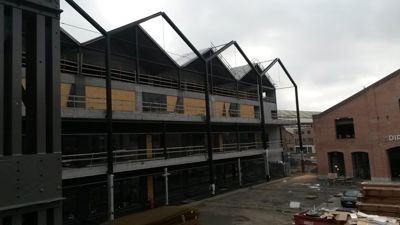 BM Engineering werkte mee aan de reconversie van gebouw B (op de hoek van de Sassevaartstraat en Dok Noord) en gebouw C (tussen gebouw B en het centrale binnenplein). Van gebouw B werden enkel de gevels behouden. Gebouw C is volledig nieuw. De ondergrondse parking onder dit laatste gebouw was al volledig ontworpen en gedimensioneerd op het moment dat BM Engineering bij het ontwerp van het bovengrondse gedeelte werd betrokken. De lastendaling van de bovenbouw moest dus perfect aansluiten op het ontwerp dat een ander ingenieursbureau van de kelderverdieping had gemaakt.
