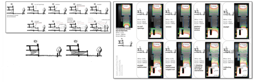 Daglichtfactor en Illuminatie worden best op planzicht onderzocht op werkvlakhoogte in plaats van perspectiefzicht.