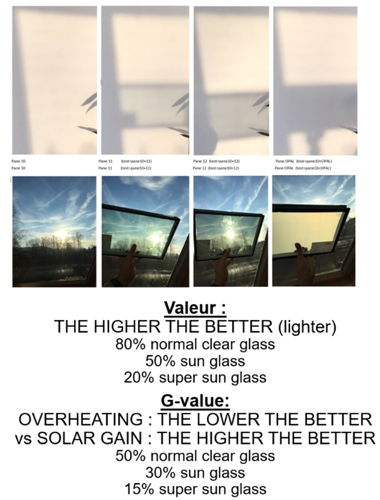 G-waarde: zie hierboven Solar Gain en Paradox. Het probleem is dat hoe klaarder het glas hoe hoger de g-waarde (en dus hoe meer warmteontwikkeling). Dat wil men liefste omgekeerd hebben natuurlijk ….