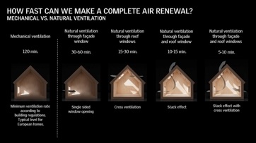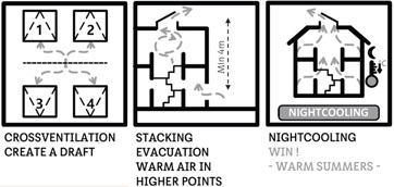 Lichtonderzoek en een verluchtingsstudie werken perfect samen. Licht op de juiste plek krijgen betekent ook dat men aan cross-ventilatie (tocht) kan doen, stacking (afvoer warmste lucht bovenaan), nightcooling. Een perfect huwelijk.