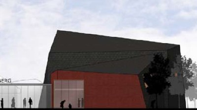 roest-bruin-grijze natuurstenen leien. Een volledig beglaasde foyer verbindt het oude cultuurcentrum