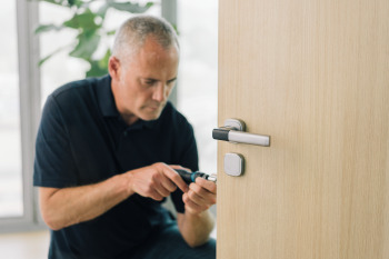 Alle Aperio-componenten zijn batterijgevoed en draadloos. Er komt dus geen bedrading aan te pas. Een cilinder of deurkruk installeer je in minder dan vijf minuten zonder boren of demontage van het bestaande beslag.