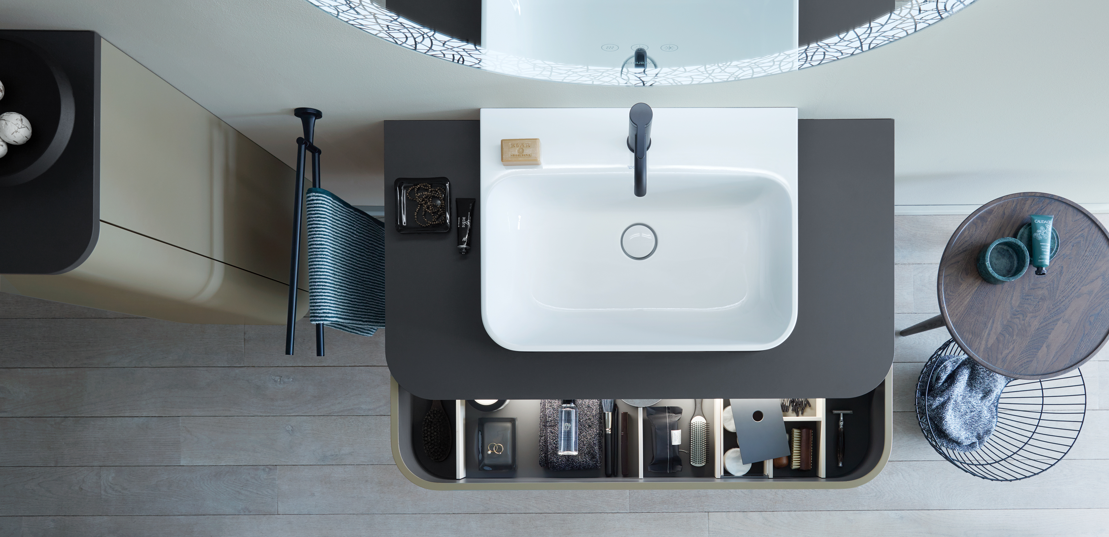 Terwijl de basisverlichting wordt gebruikt voor oriëntatie, zorgt het accentlicht voor de feel-good-factor. Contrastrijke en expressieve verlichting verlevendigt niet alleen de badkamersfeer, maar zorgt ook voor huiselijke accenten. Bij de wastafel daarentegen ligt de focus op het functionele licht, dat helder maar niet verblindend mag zijn.