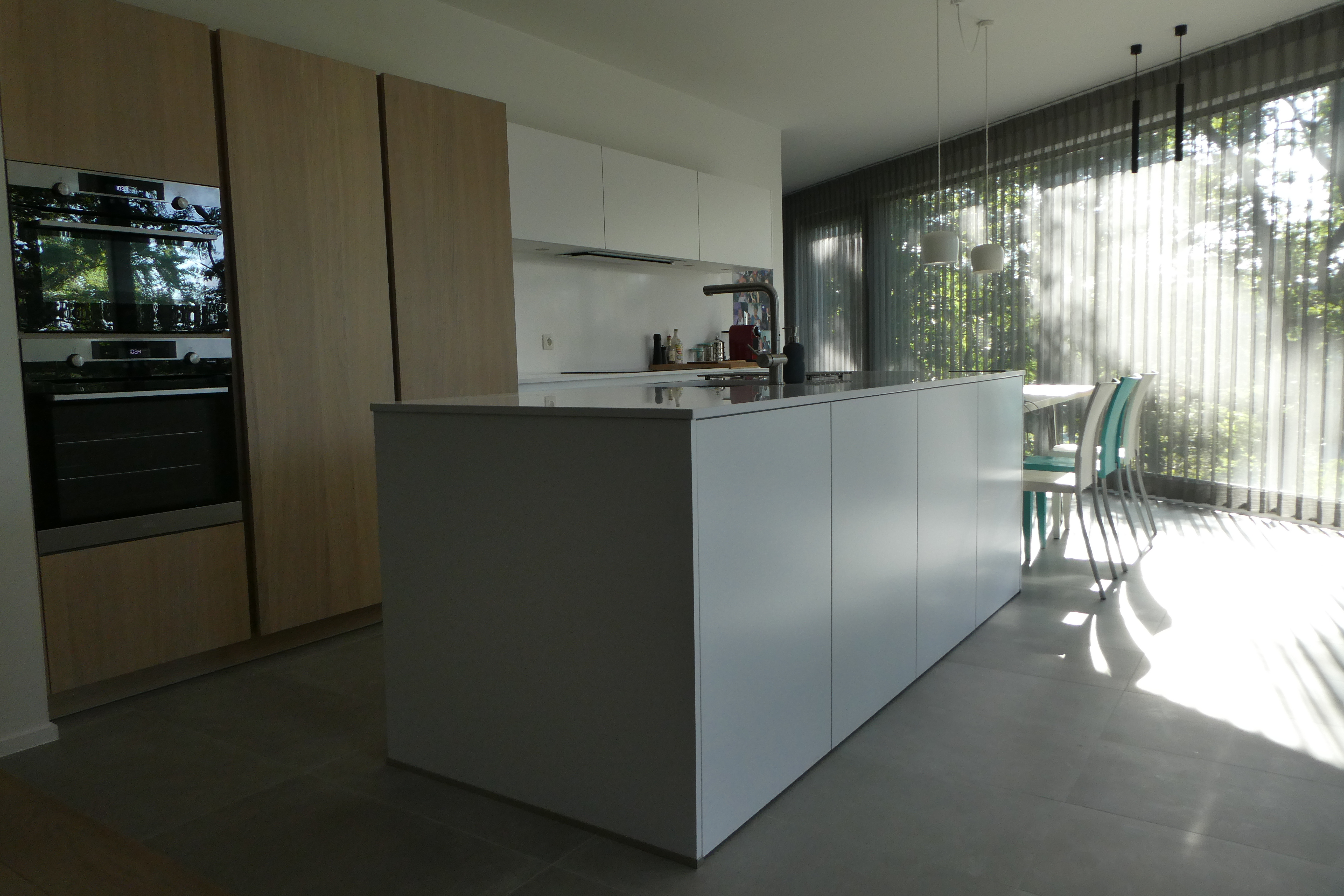 materialen. De vormgeving werd herleid tot het minimum door bijvoorbeeld de toepassing van enkel verticale deurkasten zonder deuromlijstingen en een eenvormige materiaalkeuze.
