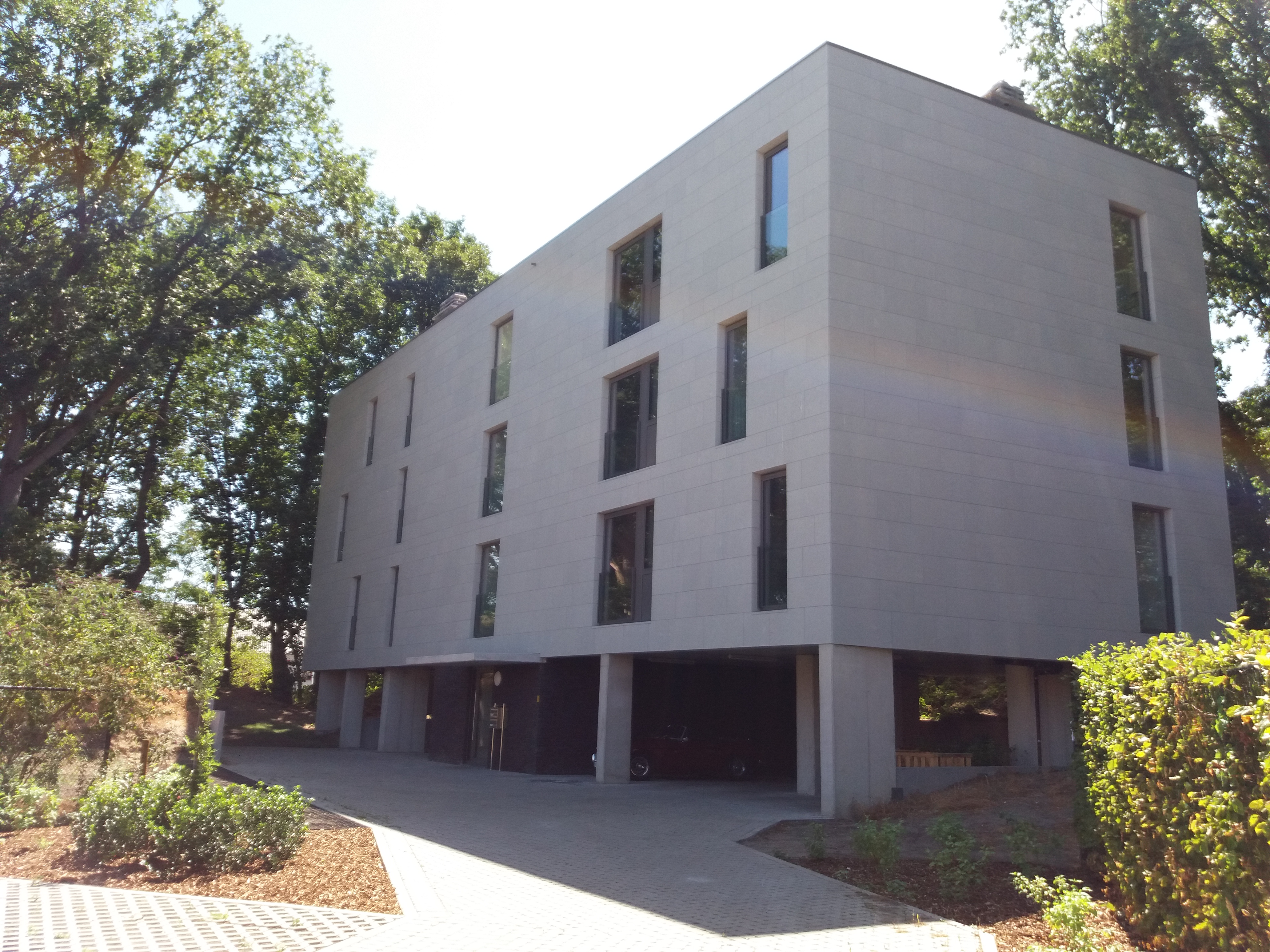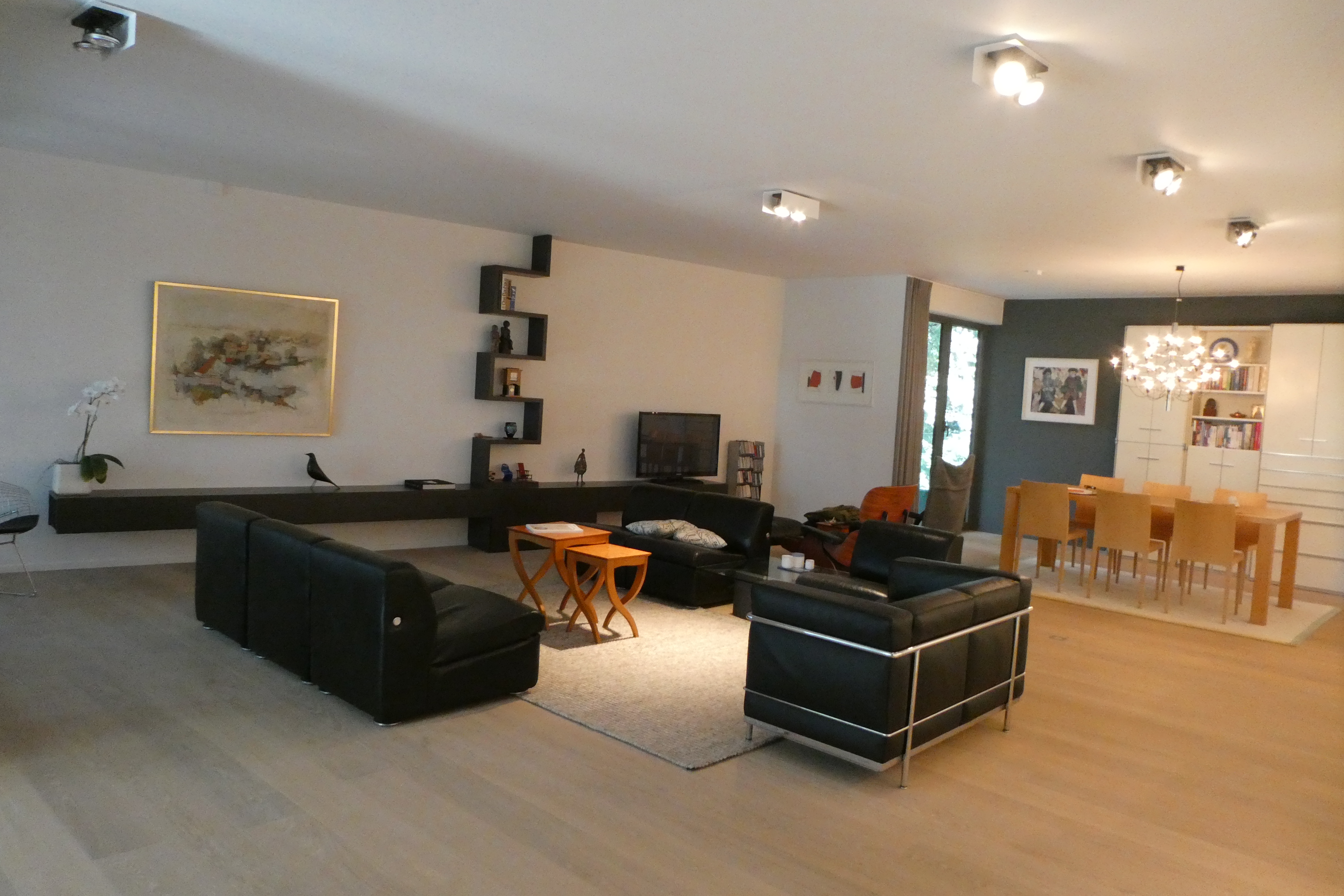 “Grote troeven zijn de situering van het gebouw zonder omgevingsinkijk en de strakke buitenschil (Spaanse natuursteen Bateige) die doorgetrokken wordt naar de binnenruimten”, gaat Geert Strobbe verder. “Evenals de toepassing van een minimalistisch kleurenpallet bij de gebruikte materialen en het feit dat alle ramen tot op vloerniveau zijn voorzien van glasplaten als balustrade, wat het contact binnen-buiten optimaliseert.