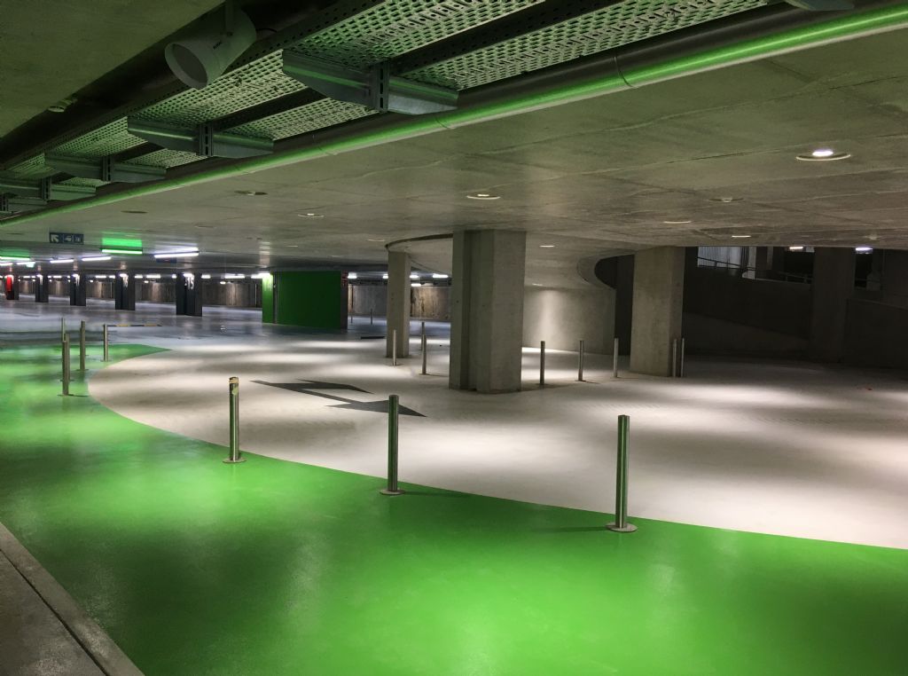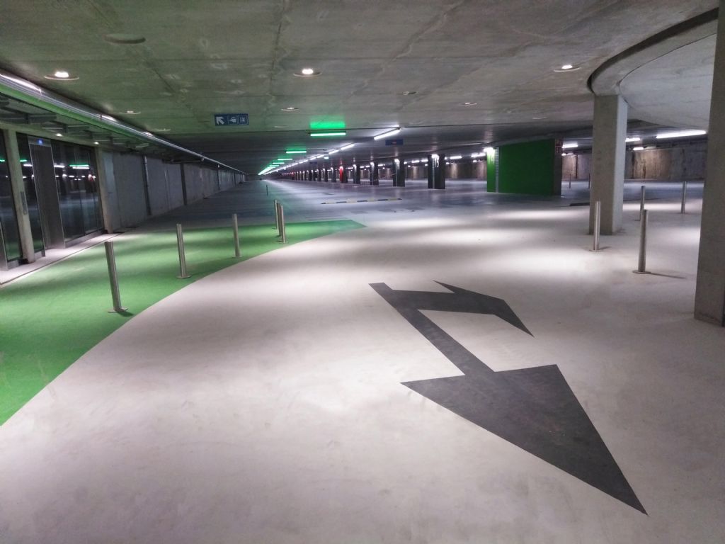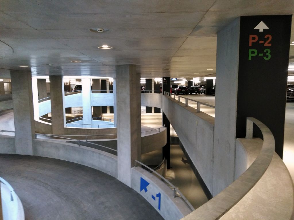 De infrastructuur is ‘obstakelvrij’, met een minimum aan kolommen en dus een maximale flexibiliteit van gebruik in de toekomst. Zo kan, in functie van de nodige capaciteit, de breedte van een parkeerplaats eenvoudig aangepast worden. Alle kabels en instrumenten zijn in de diepte van de betonnen vloeren verwerkt. Wanden en kolommen zijn verwerkt in ‘nissen’ om enerzijds de vrije ruimte te maximaliseren en anderzijds de instrumenten te beschermen tegen aanrijding of obstructie. De parking kan bovendien op eenvoudige manier aangepast worden om elektrische auto’s te kunnen ontvangen.