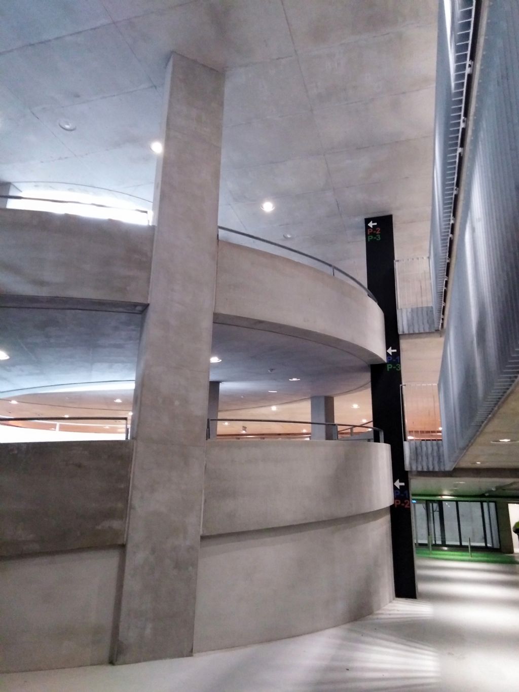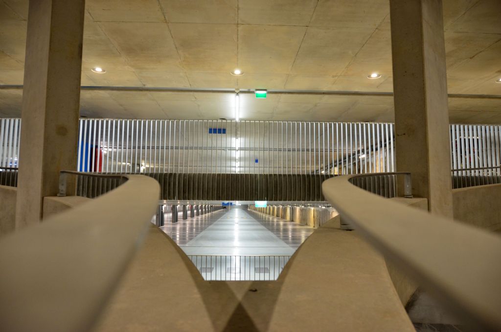 Met structurele overspanningen van 16m (welfsels) en een systeem van geïntegreerde ‘nissen’ voor technieken wordt een obstakelvrije parking gerealiseerd met een maximum aan daglicht en comfort.