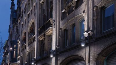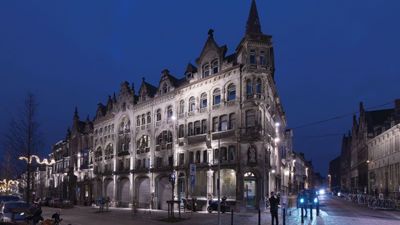 De grandeur van de architecturale parels in de Belfortstraat valt nu nog beter te bewonderen van valavond tot middernacht dankzij 85 SCULPDOT-ledschijnwerpers. De ‘uplighters’ zijn bevestigd op de eerste verdieping om de gevels uit te lichten. Gent wil zo streven naar een aangename visuele beleving van de stad en meer mensen uitnodigen tot een avondwandeling.