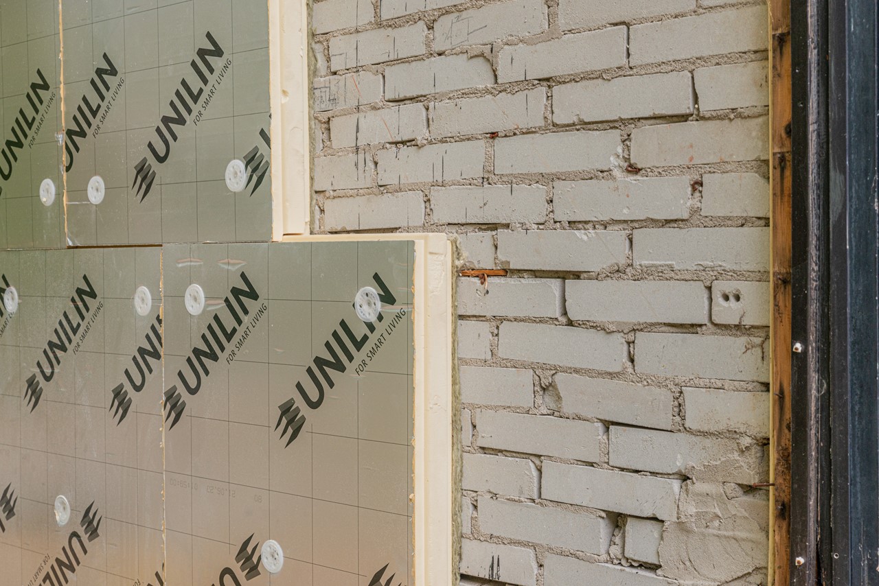De keuze van Bouwcenter RAB Amsterdam viel op de combinatie van Utherm Wall L Flex voor isolatie langs de buitenzijde (eerste verdieping) en Utherm Wall K Gyp voor isolatie langs de binnenzijde (begane grond). Twee oplossingen met een R-waarde die afhankelijk van de dikte van de PIR-platen kan oplopen tot respectievelijk 7,90 m²K/W en 5,50 m²K/W. “Vooral met de Utherm Wall L Flex-platen moesten grote oppervlakten worden bedekt”, aldus Bavinck. “Ze werden op de bouwplaats geleverd in het standaardformaat van 1.200 x 600 mm en aan de buitenkant tegen de oneffen bakstenen muur gemonteerd. We hadden er nog geen ervaring mee, maar het bleek een licht, slank en handig product dat makkelijk op maat kan worden gezaagd.”