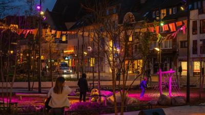 Ook de cafés en restaurants rond het plein merken het verschil. Ze profiteren nu van het groene decor dat de voorbijgangers uitnodigt om iets op hun terras te komen eten of drinken en er lang te blijven te zitten. Om die gezellige en uitnodigende sfeer nog te versterken, moet het plein ook 's avonds leven. Daarom zocht het stadsbestuur naar veilige en duurzame verlichting die bij het stadsbos past en tegelijk het hele plein extra aantrekkelijk maakt.
