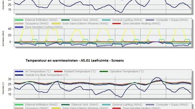 Daarnaast bekeek STABO de invloed van mogelijke verbeteringen en gebruikte het studiebureau de eigen DesignBuilder software om alle geometrische eigenschappen (isolatie, thermische massa, technieken) en invloeden (klimaat, gebruik van het gebouw) te bestuderen.