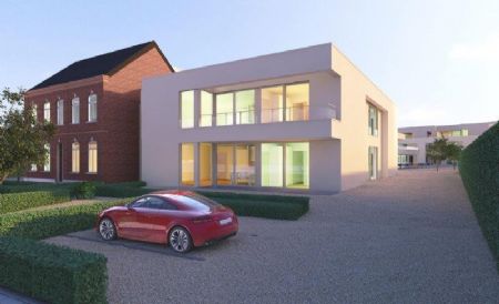 Het nieuwbouwvolume bestaat uit twee bouwblokken die architecturaal één geheel vormen. Door de positie van deze bouwvolumes ontstaat er ook een pleinfunctie. Het project heeft een totale bebouwde grondoppervlakte van 1182 m2 (blok A) en 1146 m2 (blok B). De bouwhoogte van de gebouwen bedraagt 3 bouwlagen met plat dak en een bijkomende ondergrondse parking. Het volume op de 3de verdieping wordt naar achteren teruggetrokken ten opzichte van het plein. Dat zorgt qua vorm en uitzicht voor een open, speels en niet monoliet karakter.