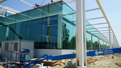 Dat het gebouw een unicum is met veel aandacht voor duurzaamheid en energieneutraliteit merk je aan de grote glaspartijen, vides en enorme overspanningen. Geert Michiels, projectleider bij Houben: “Omwille van de open structuur en de grote glaspartijen, hebben we hier TT-elementen van 12 m geplaatst en balken van 14m40 die 22 ton per stuk wegen. Als je daarbij nog eens de grote hoeveelheid aan technieken rekent, is het snel duidelijk dat dit een werf is waar we met de hele Groep Houben al onze krachten moeten bundelen om het beoogde resultaat te behalen.”