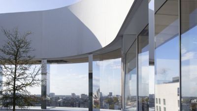 Voor het schrijnwerk waren de eisen op het gebied van akoestiek en isolatie een belangrijke factor. De grote glasvolumes speelden daarin een cruciale rol, gezien de mogelijke gevolgen voor de stabiliteit van de verschillende elementen. Als gevelsysteem werd gekozen voor Schüco FWS 50 SG, de beproefde stijlregelgevel met een veelvoud aan mogelijkheden op het vlak van vormgevingsvrijheid en thermische isolatie.