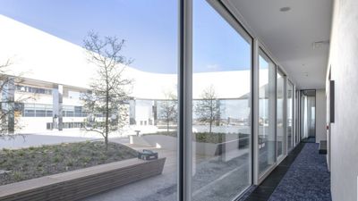 Voor de schuifdeuren bleek de Schüco ASS 70 BE VI, een aluminium schuifraamsysteem met verbeterde isolatiewaarde, de ideale oplossing. Voor de ramen en deuren viel de keuze respectievelijk op Schüco AWS 75 SI, een raamsysteem met verbeterde isolatiewaarde, en Schüco ADS 75 HD, een deursysteem gecertificeerd voor 1.000.000 cycli. Tot slot deed Schüco Firestop 60, met een brandweerstand van 60 min, dienst voor de brandwerende delen.