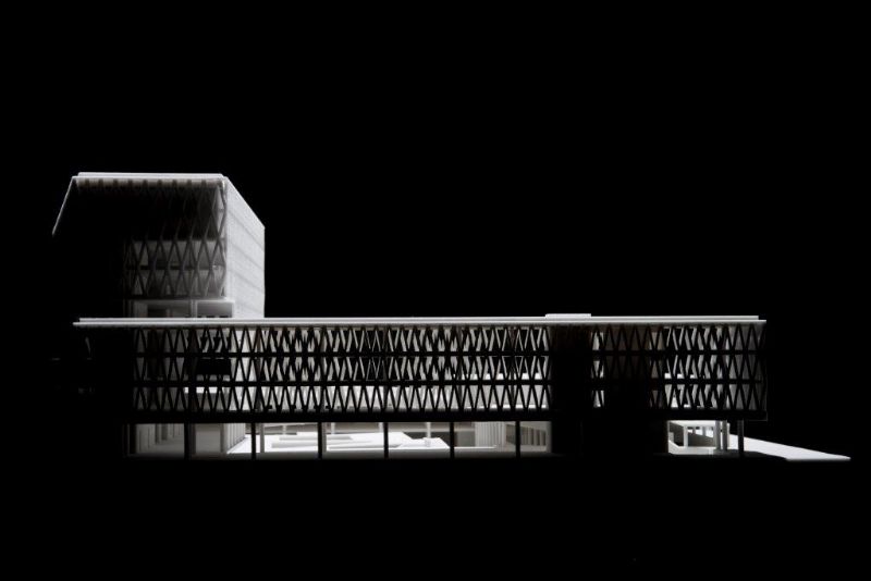 “Een model moet niet alles vertellen, daarom is het ook een maquette.” Aan het woord is Patrick Lootens, zaakvoerder van POLO Architects. Het model wordt aan een grondige inspectie onderworpen vanuit ieder standpunt. “We hebben ervoor gekozen om de raamstijlen achter de betonnen rasterstructuur niet te tonen. Zo blijft het beeld zuiver. Achteraf gezien een correcte beslissing. Een maquette is noodgedwongen een abstractie van de werkelijkheid, terwijl een 3D-tekening vaak fotorealistisch is. Beide technieken streven naar een ander beoordelingsniveau van architectuur,” gaat Lootens verder. “Het abstracte aspect verleent de maquette een zekere elegantie en toont de essentie van het ontwerp.”