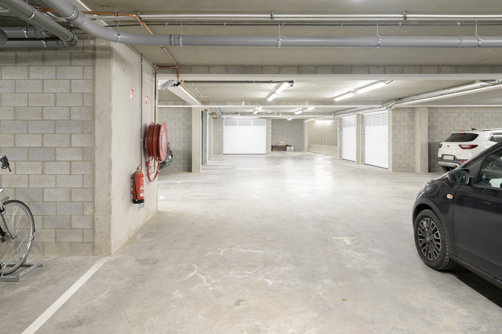 Binnenin vertrekt de organisatie van een vast grid van gemene muren, waarbinnen elk appartement een eigen indeling krijgt. In totaal zijn er negen één- en tweeslaapkamerappartementen op het gelijkvloers en de eerste verdieping, aangevuld met twee grotere woningen bovenaan met drie slaapkamers en ruime dakterrassen. Die bovenste appartementen vervangen functioneel de twee eengezinswoningen die op het perceel werden afgebroken. Onder het gebouw bevindt zich een ondergrondse parkeergarage met voldoende parkeer- en bergruimte.
