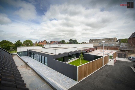 Aan één van de randen van het stadspark van Poperinge, bevinden zich het jeugdhuis en lokalen voor de verschillende jeugdverenigingen van de stad. Op dit voormalig schoolterrein werd de bestaande bebouwing gerenoveerd en is een nieuw jeugdcentrum gebouwd. Samen met het nieuw aangelegde speelplein in het aangrenzende Burggraaf Frimoutpark ontstaat zo een totaalsite voor de jeugd. Het concept richt zich, conform de filosofie van BURO II & ARCHI+I, vooral op het duurzaam omgaan met de ruimte.