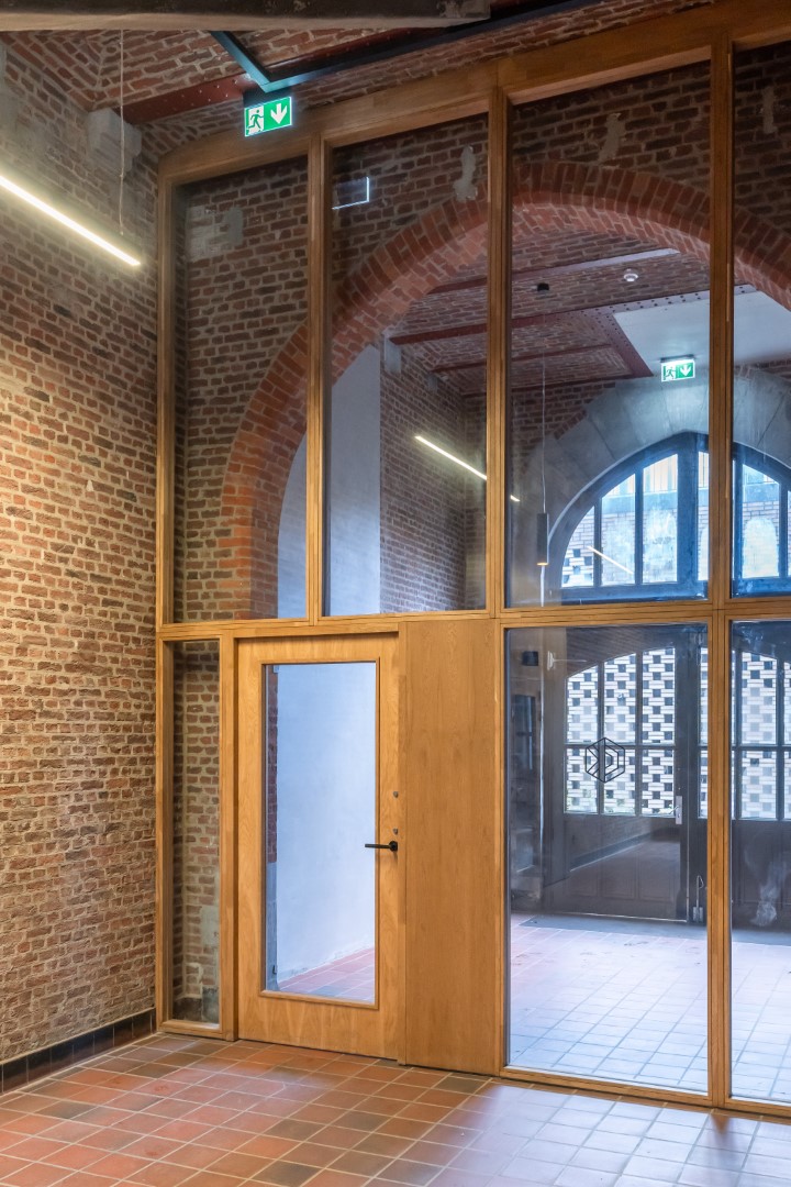 Met zijn dikke muren, kantelen, hoektorens en schietgaten leek De Leopoldskazerne voor zijn reconversie op een versterkte burcht. De opdracht was dan ook: breek dit verdedigingsbolwerk open en tover het om tot een uitnodigend trefpunt.