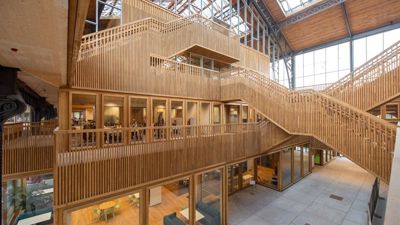 De 45.000 m² grote oppervlakte van het station krijgt er nog eens 35.000 m² bij dankzij de bouw van twaalf nieuwe paviljoenen volledig gemaakt van CLT-hout. Op het gelijkvloers komen winkels, showrooms en horecazaken, op de verdiepingen kantoren. Die nieuwbouwvolumes creëren een structuur van boulevards, straten, parken en pleinen, zorgvuldig ingepast in de centrale constructie. In het midden van het voormalige station blijft een gedeelte met aan weerszijden een royale en groene voetgangersboulevard open voor openbare evenementen.
