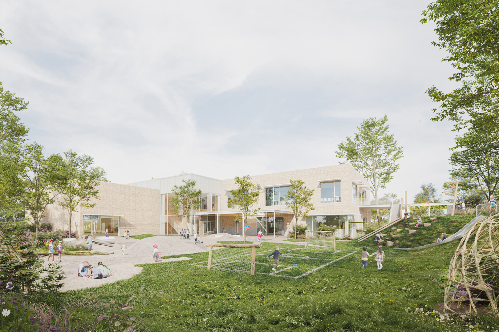 Voor Hasa architecten is die buitenruimte een volwaardig onderdeel van het ontwerp. Het gebouw wordt kleinschalig ingeplant en zoekt aansluiting bij de omgeving, terwijl het tegelijk nieuwe mogelijkheden creëert voor gebruik buiten de schooluren. “De multifunctionele opzet opent ook perspectieven voor naschoolse activiteiten, speelpleinwerking of lokale evenementen,” aldus Flebus. Zo wordt de school niet alleen een plek om te leren, maar ook een gedeelde infrastructuur voor de buurt.