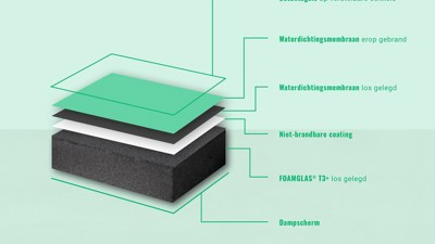 FOAMGLAS® cellenglasisolatie is een robuust en lichtgewicht isolatiemateriaal, bestaande uit een gesloten cellenstructuur. Dit voorkomt wateropname en interne condensatie, waardoor de isolatieprestaties langdurig behouden blijven. Daarnaast biedt het materiaal een hoge druksterkte en is het volledig onbrandbaar, wat de veiligheid en duurzaamheid van het daksysteem verhoogt.