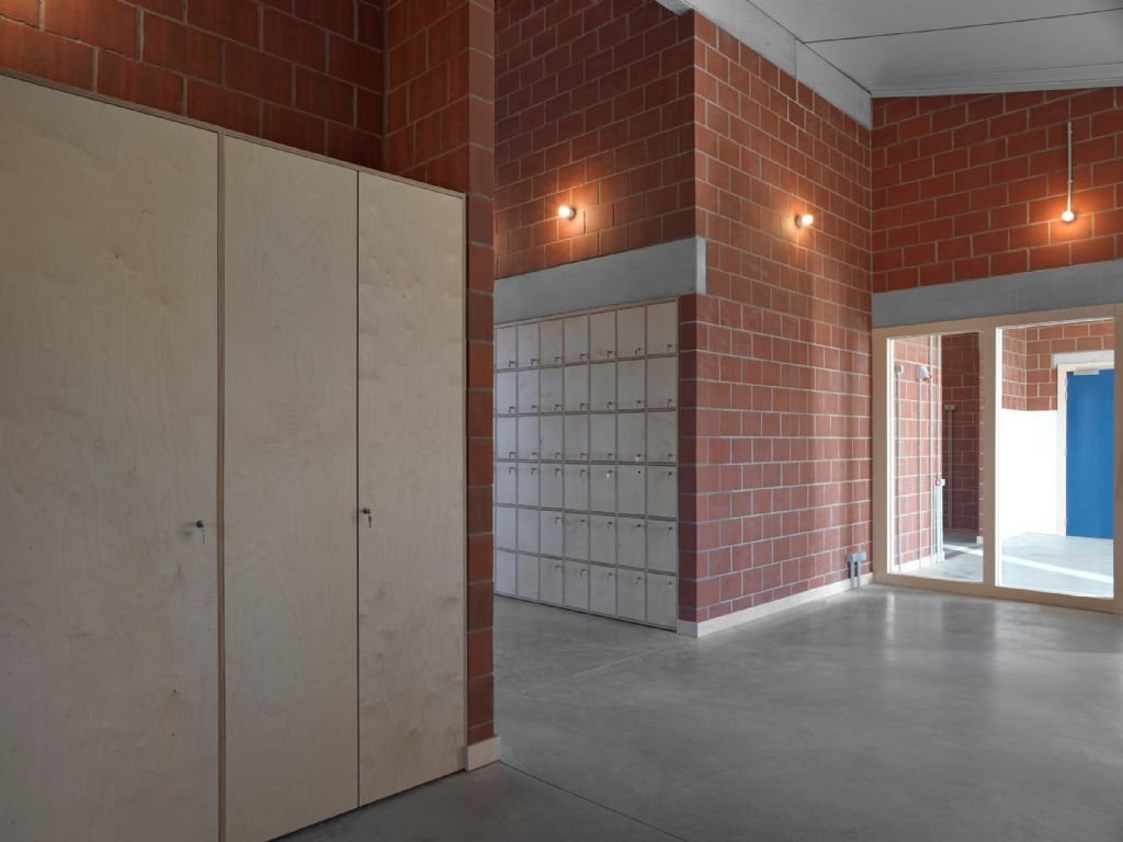 Gelet op het grote aantal rolstoelgebruikers werd geopteerd het programma in te passen in een enkele bouwlaag met genereuze verdiepingshoogte en bijzondere ruimtelijke kwaliteit. De constructie wordt opgetrokken in groen gevelmetselwerk, het interieur heeft een robuuste afwerking die toe-eigening door de gebruikers in de hand werkt.